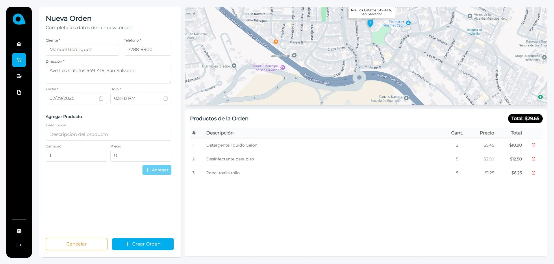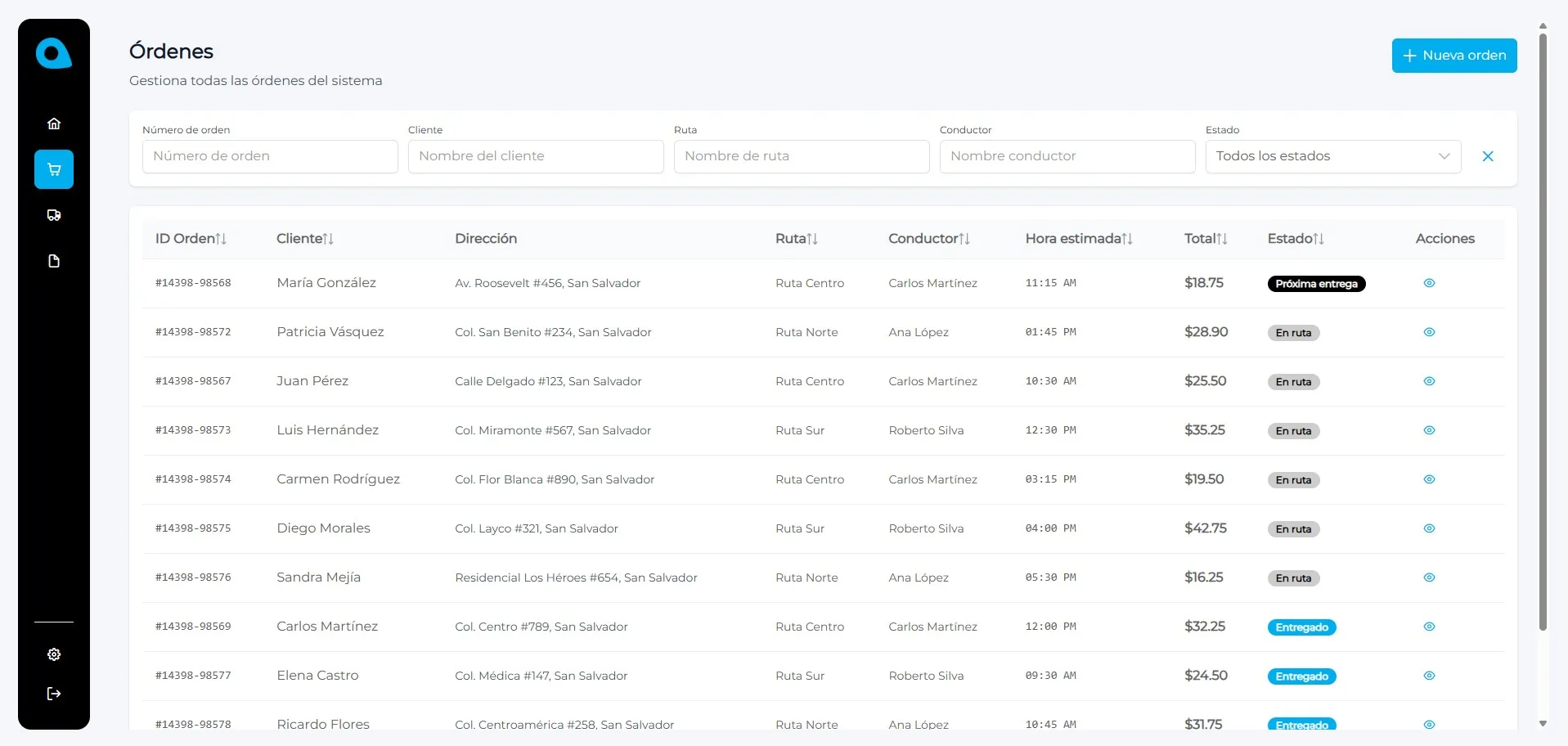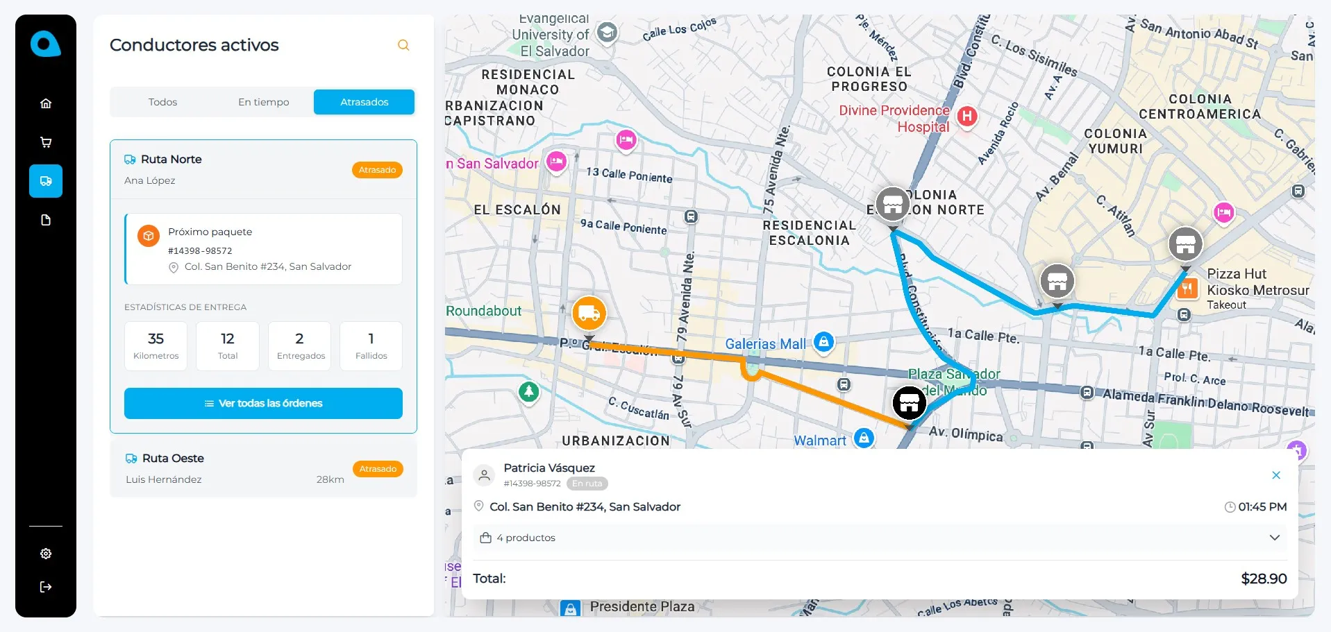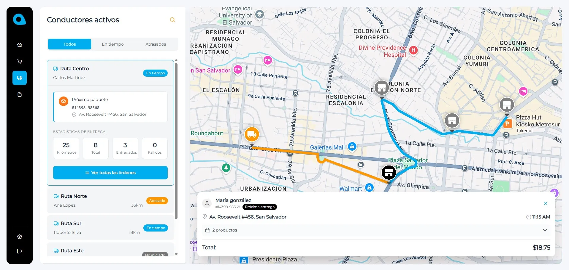Each driver can see the details of the order to be delivered, including products, location, estimated time of arrival, and amount due from the customer.
